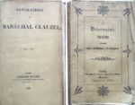 176. [ALGÉRIE]. LA GOURNERIE (Eugène de). La Béarnaise. Épisode des Guerres d’Afrique. Paris, Paulin, Nantes, Mellinet, 1834. In-8, broché. Couverture imprimée (défraîchie, petites déchirures au dos). 144 pp. Qq. rousseurs. Édition originale portant la mention manuscrite non signée en page de garde : hommage de l’auteur. L’équipage de la goëlette La Béarnaise, sous les ordres des capitaines d’Armandy et Yusuf, s’empara de la citadelle de Bône, le 27 mars 1832. Polak 5050 Tailliart, Algérie, 1697. On joint : CLAUZEL (Maréchal). Explications. Paris, Ambroise Dupont, 1837. In-8, reliure demi-basane bordeaux à coins, dos à 5 nerfs, chiffre G. S. (Gérard Sangnier) en pied. Qq. épidermures. Couvertures conservées. 189 pp. et une planche repliée comportant 3 cartes. Rares rousseurs. Édition originale de ces Explications visant à justifier son échec devant Constantine. Provenance : vente Gérard Sangnier, n° 100 (10.12.2002).