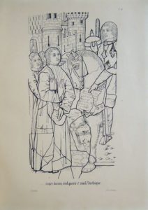 187. BAUDEVILLE. La Légende de Saint Armel, Mise en vers français, sous forme de Tragédie par Messire Baudeville, prêtre et maître d’école, en la ville de Ploërmel Représentée, en 1600, à Ploërmel publiée pour la première fois par Sigismond Ropartz. Vitrail de Saint Armel, en l’église paroissiale de Ploërmel, dessiné et lithographié par P. Hawke. Saint-Brieuc, L. Prud’homme, 1855. In-folio, broché. Qq. taches en couverture, un peu insolée, dos cassé. (4)-frontispice-4-134-(1) pp. et 8 planches hors-texte au trait en noir. Édition originale. Sacher p. 12.