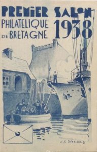 210. [BRETAGNE - PHILATÉLIE]. Réunion de 6 cartes et 5 planches « Premier jour » dont : Premier Salon Philatélique de Bretagne (17-21 déc. 1938), 2 cartes illustrées par Sévellec ; Alignements de Carnac (10 juil. 1965), carte illustrée par Joubroux ; Trinité-sur-Mer (15 fév. 1969), carte et planche, illustrée par Decker ; 25ème anniversaire de la Libération de Lorient (10 mai 1970), planche illustée par Vachey.