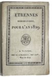 256. [VANNES - IMPRIMERIE]. Impressions Vannetaises XVIIIe - XIXe s. Réunion d’ouvrages : • CICERON. M. Tulii Ciceronis in L. Catilinam in Senatu, Oratio Quarta. Venetiis, Apud Nic. Galles & Viduam J.-N. Galles, 1769. In-8, broché. Couverture d’attente muette. 34 pp. Cahier b (p. 9-16) en double. Traduction en français dans les interlignes sur les 4 premières pages. Ex-libris manuscrit en page de titre : Dasnier fils bon garçon. • GLAIS, aîné. Manuel Élémentaire des Poids et Mesures, Rédigé particulièrement pour le Département du Morbihan… Vannes, Chez les Enfans Galles, 1807. In-8, broché. Sans couverture. 115-(5) pp. Cachet ex-libris sur le faux-titre : Lagillardaie. Indispensable pour le calcul des conversions en décalitres et litres des perrées (mesure bretonne) ou boisseaux (mesure française) propres à chaque commune bretonne, conversions des mètres-cubes en toises-cubes, des grains en décigrammes, des monnaies, mesures pour le sel et lebois de chauffage, etc… • Voyage Misterius de inis er Vertu. É Guénet, J. M. Galles, s. d. In-16, cartonnage, dos manquant. 158 pp. Petite galerie de ver sur le dernier feuillet. Bois gravé à pleine page. • Etrennes Morbihanaises, pour l’An 1829. Vannes, de Lamarzelle, s. d. (1829). In-16, broché. 60 pp. • TAHIER (G., de Pontivy). L’Illusion, Pöeme. Suivi du Dernier Chant du jeune Poëte. Vannes, Veuve Bizette, 1824. In-8, broché. Couverture bleue imprimée. 23-(5) pp.