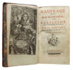 273. [MORELLY (Étienne-Gabriel)]. Naufrage des Isles Flottantes, ou Basiliade du célèbre Pilpai. Poëme heroïque. Traduit de l’Indien par Mr. M******. Messine [Paris], Par une Société de libraires, 1753. In-12, reliure de l’époque veau marbré, dos à 5 nerfs orné, pièce de titre maroquin rouge, tranches rouges. Légers frottements, coiffe supérieure en partie manquante, coins usés. T. 1 : Frontispice, (2)-xli-(1)-216 pp. T. 2 : (2)-307 pp. Petit trou en marge interne des deux premiers ff. sans atteinte au texte, rares rousseurs. Édition originale de cette utopie par Morelly, considéré comme l’un des utopistes les plus importants du XVIIIe siècle. Barbier III, 399 ; Versins, Encyclopédie de l’Utopie… p. 602.