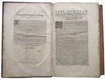 275. NIGER (Domenicus Marius), CORVIN, STRABON. Geographiae Commentariorum Libri XI, nunc primùm in lucem magno studio editi, qvibus non solum orbis totius habitabilis loca, regiones, provinciæ, urbes, montes, insulæ, maria, flumina, & cætera, ut nostro tempore sunt sita & denominata, verum etiam omnium feré populorum & variarum gentium mores, leges ac ritus tam sacri quam prophani exacté describuntur, ita ut uel ipso Strabone utilior nostris temporibus, auctor hic doctorum quorundam iudicio merito habeatur. Una cum Laurentii Corvini Novoforensis Geographia. Et Strabonis Epitome per D. Hieronymum Gemusæum translata, quam adiecimus ut quo cum Marium hunc nostrum Lector conferat, habeat. Adiecto rerum & verborum memorabilium Indice lo cupletissimo. Basileæ (Bâle), per Henrichum Petri, mense Martio, 1557. In-folio, reliure veau brun, dos à 6 nerfs orné de fleurons fleurdelysés, roulette en dents de rat en encadrement sur les plats, inscription Collegium Marchianum dans une frise dorée avec fleurons d’angle fleurdelysés au centre des plats. Qq. frottements et épidermures avec petit enfoncement sur la coupe latérale du premier plat, qq. trous de vers au dos, coins émoussés. (96)-787-(1) pp. Qq. rousseurs et traces brunes marginales, petit défaut de papier dans l’angle d’un f., dernier feuillet froissé avec deux petits trous en marge supérieure. Lettrines sur bois gravées. Belle marque de l’imprimeur en page de titre et au verso du dernier feuillet. Bon état général. Le Collegium Marchianum ou Collège de La Marche est un Collège universitaire fondé après 1362 par Jean de La Marche, dirigé à sa mort par son neveu puis transféré en 1420 sur la montagne Sainte-Geneviève et développé par Beuvin de Winville. Fermé en 1790, ses bâtiments furent donnés en 1808 à l’Université de Paris, transformés en caserne en 1830, puis démolis en 1855 lors du percement de la rue des Ecoles. Rare édition originale de ce Compendium par le vénitien Dominicus Marius Niger (ou Le Noir), sur lequel on connaît peu de choses, décrivant la géographie et s’intéressant aux mœurs et coutumes et lois de plusieurs parties du monde (Europe p. 1 à 349, Afrique p. 350 à 414, Asie p. 415 à 592). … il ne parle point de l’Amérique : ce qui fait connoître qu’il composa cet Ouvrage, avant qu’Americ Vespuce eût découvert cette quatrième partie du monde l’an 1492, selon Moreri. L’ouvrage commence par un long index des noms sur 3 colonnes (84 pp.) et, après les Commentaires de Niger, se poursuit par la géographie de Laurent Corvinus (1465-1527) et un Epitome de Strabon traduit par Hieronymus Gemusaeus (1505-1544) déjà publié en 1539. L’édition est établie par Wolfgang Wissenburg, auteur de la préface.