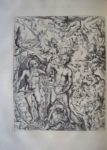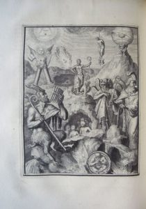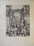 292. WESTERHOFF (Arnoldus Henricus). HOOGHE (Romeyn de, graveur). Hieroglyphica of Merkbeelden der oude volkeren : namentlyk Egyptenaren, Chaldeeuwen, Feniciers, Joden, Grieken, Romeynen, enz. … Amsterdam, Joris van der Woude, 1735. In-4, reliure veau marbré, dos à 5 nerfs orné, roulette ornée avec fleurons d’angle en encadement sur les plats, tranches rouges. Bande légèrement insolée en bordure des plats. Frontispice, (20)-455-(20) pp., portrait de Romeyn de Hooghe gravé par J. Houbraken d’après H. Bos et 63 planches hors texte gravées à l’eau-forte par Romeyn de Hooghe. Illustré d’une dédicace gravée, une vignette de titre et un en-tête gravés par J. Wandelaar. Texte en néerlandais. Hormis une trace de mouillure en tête du portrait, bel état intérieur. Bon exemplaire sur papier fort de cet ouvrage paru à titre posthume, réputé pour les gravures allégoriques foisonnantes de personnages et d’animaux par Romeyn de Hooghe (1645-1708). Brunet V, 1435; Dorbon 5261.