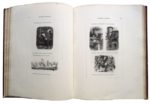 295. BLANC dit La Goutte. Grenoblo Malhérou. Poésies en Patois du Dauphiné. Dessins de D. Rahoult, gravures de E. Dardelet. Préface par George Sand. Grenoble, Rahoult et Dardelet, 1864. Suivi de : Poésies en Patois du Dauphiné. Dessins de D. Rahoult, gravures de E. Dardelet. Préface et glossaire par Michal-Ladichère. Grenoble, Rahoult et Dardelet, 1874. 2 ouvrages en un volume in-folio, reliure demi-maroquin rouge à coins, dos à 5 nerfs soulignés de filets dorés. Mors et nerfs frottés, coins usés. ix-(3)-135-(5)-ix-78 pp. Qq. rousseurs. Nombreuses illustrations dans le texte (paysages, monuments et vues de villes, scènes animées, parfois humoristiques, etc.) par le peintre grenoblois Charles Diodore Rahoult (1819-1874). Première édition illustrée de cet ouvrage attribué à François Blanc (1662-1742), épicier grenoblois « impotant et rongé par la gouthe à l’excès…» que George Sand dans sa préface qualifie d’historien, archéologue et poète. Grenoblo Malherou est le récit de « la désastreuse inondation de 1733, avec toutes les souffrances publiques et privées qui en furent la conséquence » et fut publié dès cette année-là. Le second ouvrage se compose de deux textes : Copie de la Lettre (au sujet de l’inondation survenue à Grenoble le 20 décembre 1740) et Jacquety de Le Comare. Vicaire I, 812 et 813; Carteret III, 95 (qui ne mentionnent pas le deuxième texte du second ouvrage).