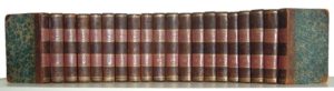 317. ROLLIN (Charles). Histoire Romaine, depuis la fondation de Rome jusqu’à la bataille d’Actium, c’est-à-dire jusqu’à la fin de la république. Nouvelle édition. Paris, E. Babeuf, L. Saint-Michel, 1815-1816. 20 volumes in-16, reliure demi-basane marbrée à petits coins, dos lisse orné, pièce de titre et de tomaison rose, tranches jaunes jaspées. Mors et coupes frottés. Rousseurs. La première édition de cette Histoire Romaine, continuée par Crevier, est parue en 1752.