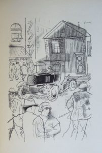 368. DURTAIN (Luc). Crime a San-Francisco. Récit orné de 8 lithographies originales de Georges Annenkoff. Paris, Au sans Pareil, 1927. In-8, broché. Dos et plats insolés, manque en tête et pied. Frontispice, (6)-88-(1) pp. et 7 lithographies en noir. Intérieur propre en partie non coupé. Édition originale tirée à 775 ex. dont celui-ci, un des 650 ex. sur vélin Lafuma comportant un bel envoi signé de Luc Durtain à Franz Masereel : Au cher grand type Franz Masereel, qui a fait de « Découverte de Longview » le plus merveilleux bouquin du monde, celui-ci, qui n’est pas vilain…