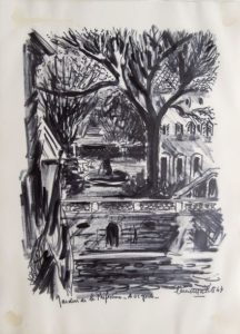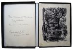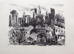 379. MALCLÈS (Laure). Avignon. Avant-propos par André Chamson. Avignon, Imp. Rhône-Durance, Paris, Desjobert, 1967. In-4 jésus, en feuillets, dans un emboîtage papier noir, étiquette blanche sur le plat (qq. légères traces et piqûres). 8-(3) pp., 30 lithographies en noir et un dessin original sur calque. Qq. piqûres. Recueil de 30 lithographies tirée à 250 ex. sur papier de Rives dont celui-ci, un des 20 exemplaires comportant un dessin original de Laure Malclès, dédicacé par l’artiste à M. et Mme Raytchine. Laure Malclès (1911-1981) épousa Frans Masereel le 14 janvier 1969.