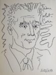 386. [PICASSO, d’après] et alii. Frieden der Welt. Мир всему Миру. Peace for the World. Paix du Monde. Dresden, Verlag der Kunst, 1959. In-folio, en feuillets, dans un emboîtage papier gris, dos toile bleue avec titre en blanc, plat illustré d’un dessin de Picasso. Plat défraîchi (qq. taches et coins usés). 12 pp. (texte de présentation et liste des œuvres en 4 langues - allemand, russe, anglais et français) et 48 planches dont 6 en couleurs et quelques-unes sur papier de couleur. Recueil complet de 48 reproductions d’œuvres d’artistes du monde entier (parmi lesquels Franz Masereel et Picasso) sélectionnées à l’occasion du concours organisé pour l’Exposition Internationale de l’Art du Livre en 1959 à Leipzig.