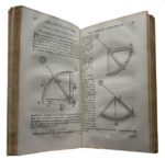 468. BLAEU (Willem Janszoon). Institutio Astronomica de usu Globorum & Sphærarum Cælestium ac Terrestrium : duabus partibus adornata. Una, secundum, hypothesin Ptolemæi, per terram quiescentem. Altera, juxta mentem N. Copernici, per terram mobilem. Latinè reddita à M. Hortensio… Amstelædami, Apud Joannem Blaeu, 1668. In-8, reliure vélin rigide ivoire, dos lisse orné de filets et fleurons dorés, titre et date à l’encre au dos, losange doré au centre des plats encadrés d’un double filet doré avec petits fleurons d’angle. Légers frottements superficiels, liens d’attache manquants. (16)-243 pp. Nombreuses figures sur bois gravées dans le texte. Belle figure en page de titre. Belle marque de l’imprimeur en page de titre avec la devise Indefessus agendo. Provenance : Étiquette Ex Bibliotheca P. P. C. Lammens recouvrant un ex-libris manuscrit GJ de Servais. • Gaspar Joseph de Servais (1735-1807) : botaniste, la bibliothèque de ce bibliophile belge (plus de 6000 numéros dont plus de 400 incunables) fut vendue le 3 octobre 1808 et jours suivans à Malines. Notre exemplaire est référencé sous le n° 1646 de son catalogue. • Pierre Philippe Constant Lammens (1762-1836) : bibliophile gantois dont la collection fit l’objet de quatre grandes ventes de plusieurs jours de 1839 à 1841, fut professeur et bibliothécaire à l’université de Gand. Bel exemplaire en reliure du temps, doté de la remarquable double provenance de deux grands bibliophiles, de ce traité confrontant les systèmes de Ptolémée (qui veut que la terre soit immobile) et Copernic (qui tient que la terre est mobile) et leur application dans la construction et l’utilisation des globes terrestres et célestes. La première édition de cette traduction en latin, d’après l’édition originale en néerlandais, par le mathématicien et astronome hollandais Martin van den Hove dit Hortensius (1605-1639) est parue en 1634.