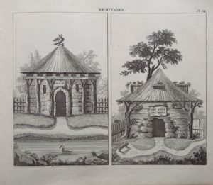 472. [BOITARD (Pierre)]. Traité de la Composition et de l’Ornement des Jardins, avec cent deux planches, représentant des plans de jardins, des fabriques propres à leur décoration, et des machines pour élever les eaux. … 4e édition, revue et augmentée de l’art de construire des maisons tout en bois et des chalets, selon la méthode du canton de Berne en Suisse. Paris, Audot, 1834. In-8 oblong, reliure de l’époque demi-veau rouge à petits coins, dos lisse orné de frises et roulettes dorées et d’un fleuron à froid. Qq. frottements, dos un peu passé. Frontispice, viii-159 p. de texte, et 97 planches dont 1 réhaussée en couleurs, souvent composées de plusieurs illustrations.. Qq. rousseurs, plus présentes sur les ff. de texte que sur les planches. Ex-libris manuscrit en page de titre : Mme Vve de Calan. Nouvelle édition de cet ouvrage paru pour la première fois en 1818, par Pierre Boitard (1789-1859) complet des planches représentant différents types de jardins paysagers, serres, habitations rustiques, pavillons, pagodes et ermitages, divers éléments d’architecture, cabanes pour les animaux, portes et barrières, balançoires, moulins et systèmes de pompes…