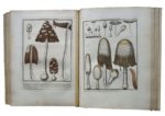474. BULLIARD (Pierre) et VENTENAT (Étienne Pierre). Histoire des Champignons de la France, ou Traité élémentaire renfermant dans un ordre méthodique les descriptions et les figures des champignons qui croissent naturellement en France… 1791-1812. 2 volumes in-4, reliure demi-basane fauve, dos à 5 nerfs. Qq. épidermures. Recueils contenant l’un 114 et l’autre 105 planches montées sur onglet, presque toutes rehaussées en couleurs, numérotées à la main et classées selon un ordre différent du numéro imprimé. Qq. annotations au crayon, qq. rousseurs. Ces deux volumes totalisant 219 magnifiques planches de champignons qui semblent constitués en majorité des tomes 5 et 6 de l’Histoire des Champignons comprennent également des planches de l’Herbier.