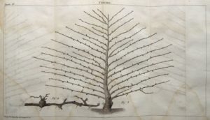 478. FORSYTH (William). Traité de la Culture des Arbres Fruitiers, Contenant une nouvelle manière de les tailler, et une méthode particulière de guérir les maladies qui attaquent les Arbres fruitiers et forestiers, avec XIII Planches. Traduit de l’Anglois avec des notes par J. P. Pictet-Mallet. Genève, Bossange, Masson et Besson, 1803. In-8, reliure de l’époque demi-basane fauve, dos lisse orné. Qq. légers frottements et craquelures au dos, petits accrocs aux coiffes. (4)-xxx-384 pp. et 13 planhces dépliantes in fine. Traces de mouillure, notamment sur les 10 premiers ff. et sur les planches. Édition originale de la traduction de cet ouvrage paru en 1802 par William Forsyth (1737-1804), botaniste et horticulteur, surintendant des jardins royaux de St. James et Kensington. L’auteur s’intéresse à la culture et aux soins à donner à de nombreux types d’arbres fruitiers (abricotier, prunier, pêcher, cerisier …) mais également au mûrier, à la vigne, etc…, à la nature des sols, aux maladies et aux insectes.