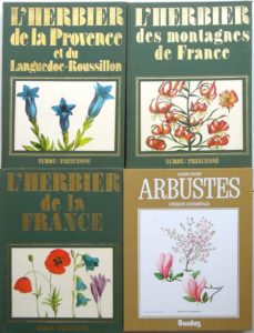 480. PACCALET (Yves). Réunion de trois volumes : • L’Herbier de la France. Paris, Tchou / Princesse, 1978. • L’Herbier de la Provence et du Languedoc-Roussillon. Présenté par Yvan Audouard. Paris, Tchou / Princesse, 1978. • L’Herbier des Montagnes de France. Présenté par Gaston Bonheur et Roger Frison-Roche. Paris, Tchou / Princesse, 1978. 3 volumes in-4, reliure éditeur toile verte (un peu fanées), illustration contrecollée sur le plat. Non paginé. Grandes illustrations en couleurs. • Joint : BROSSE (Jacques). Atlas des Arbustes, Arbrisseaux et Lianes de France et d’Europe Occidentale. Planches originales de Gilles-Loïc Lucien. Paris, Bordas, 1983. In-4, reliure éditeur toile beige, illustration contrecollée sur le plat. 287 pp. Près de 1700 specimens étudiés, 200 illustrations en couleurs.