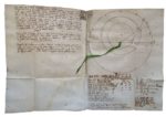 482. AUBRY de Montpellier (Jean d’). Le Triomphe de l’Archée et la Merveille du Monde ou la Médecine Universelle et Véritable pour toutes sortes de Maladies les plus desesperées, (qu’elle guerit par les sueurs ou les transpirations insensibles, en rafraichissant, sans aucune incommodité ny vomissement, & sans ayde de l’Art Magique, comme l’on s’estoit persuadé) nouvellement découverte… Dédiée à la Reine des Anges. Cinquiesme Edition. Augmentée de l’Apologie de l’Autheur, contre certains Docteurs en Médecine, les persecuteurs de son emprisonnement, respondant à leurs calomnies que l’Autheur a guery par Art Magique beaucoup de maladies incurables et abandonnées. Et de plusieurs remerciemens des cures & guerisons faites par les Remedes du Sieur Abbé d’Aubry ... Et de beaucoup de Consultations faites & envoyées en diverses Langues au sieur Abbé d’Aubry, par les plus sçavans Medecins, Apotiquaires, & Chirurgiens de l’Europe (...). Paris, Chez l’Autheur, s. d. (1661). In-4, reliure XIXe s. demi-veau rouge, dos à 4 nerfs orné. Premier plat détaché retenu par du scotch d’où des bandes épidermées au dos et sur les mors. (20)-36-227-(8)-[7]-319 pp. (chiffré 119) et une double grande planche manuscrite. Les pages 261 à 268 ne sont pas chiffrées puis la numérotation reprend à 69 (au lieu de 269). La planche avec le calendrier astronomique est incomplète de ses cercles (reproduction jointe en photocopie). Les exemplaires semblent avoir des paginations différentes… Plusieurs ff. ou cahiers brunis. Exemplaire dans lequel des gloses ont été contrecollées dans les marges et 2 grandes pages repliées manuscrites (en latin) avec une figure ajoutées à l’époque. Ex Libris : Manuel de Aguilera y Ligues, Marqués de Cerralbo (1904-1977) gravé par Maria de Cardona. Signature en page de titre : Delarüe. Volume fort bizarre « également recherché pour son originalité qui est extrême et pour sa rareté déjà particulière à la fin du XVIIIe siècle » selon Stanislas de Guaita in Dorbon 1004 qui ajoute : Il est terminé par quantité d’attestations et remerciements de personnes guéries, par le remède de l’auteur, des maladies les plus diverses : Verolle, goute invétérée, ulcère caverneux, lèpre, cancer, incommodité des yeux et taye, scurbut, flux hépatique… possession par charmes et sortilèges…. autant d’éléments qualifiés « d’indigeste production » par Caillet 513.