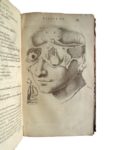 483. BARTHOLIN (Thomas). Anatomia Reformata. Anatomia Ex Caspari Bartholini Parentis Institutionibus, Omniumque Recentiorum & propriis Observationibus Tertium ad sanguinis Circulationem Reformata, Cum Iconibus novis accuratissimis: Additur & huic Postremæ Editioni Th. Bartholini Appendix de Lacteis Thoracicis & Vasis Lymphaticis. La Hague, Adrien Vlacq, 1666. In-8, reliure de l’époque veau brun, dos à 5 nerfs orné. Reliure très usagée, épidermures et craquelures, mors en partie fendu avec qq. manques, coins usés. Titre-frontispice, (14)-594-(14) pp. et 68 planches dont 2 (sur 8) dépliantes. Qq. traces de mouillure et taches, petites galeries de vers en tête des premiers feuillets, déchirure en marge d’une page, une pl. dépliante abîmée en marge, plusieurs inversions de ff. Ex-dono ancien peu discret en page de garde. Les Anatomia reformata de Thomas Bartholin (1616-1680) reprennent dans une version révisée et augmentée les Institutions anatomiques de son père, le médecin et anatomiste danois Gaspard Bartholin (1585-1630) publiées en 1611. Dans cette troisième édition latine (la première sous ce titre est parue en 1651) sont ajoutées les observations de Thomas Bartholin sur le conduit thoracique et ses recherches sur le système lymphatique (préalablement publiées en 1652-1653). Exemplaire incomplet de 6 planches dépliantes mais complet du portrait de l’auteur et de son surprenant titre-frontispice représentant la peau d’un écorché sur laquelle sont inscrits le nom de l’auteur et le titre de l’ouvrage. Créhange p. 82 ; Garrison-Morton 1096-1097.