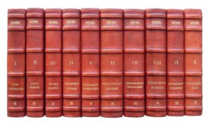 486. HERING (Constantin). The Guiding Symptoms of our Materia Medica. Philadelphia, The American Homœpathic Publishing Society, J. M. Stoddart (T. 1 à 4), The Estate of Constantine Hering (T. 5 à 10), 1879-1891. 10 volumes in-8, reliure moderne chagrin rouge, dos à 6 larges nerfs. Qq. rares et légères griffures. ix-(1)-506-(2)-506-vii-500-(4)-519-iv-552-iv-650-(2)-604-658-527-583 pp. Table manuscrite (2 pp.) en fin du tome 1. Bel état général. Édition originale de cet ouvrage réputé du médecin homéopathe américain d’origine allemande Constantine Hering (1800-1880), ami de Samuel Hahnemann, un des pionniers de l’homéopathie aux États-Unis. L’ouvrage fut complété par ses étudiants et édité à titre posthume par Calvin B. Knerr, Charles G. Raue et Charles Mohr.