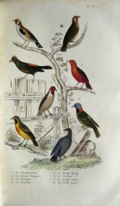 499. BUFFON (Comte de). Œuvres Complètes avec les Supplémens, augmentées de la classification de G. Cuvier et accompagnées de belles vignettes gravées sur acier représentant plus de 800 animaux. Paris, Duménil, 1836-1837. 9 volumes in-8, reliure demi-basane brune, dos lisse orné. Reliures très usagées, épidermures et craquelures, coiffes plus ou moins usées, mors en partie fendus. Plus ou moins de rousseurs selon les volumes, planches parfois brunies, qq. ff. détachés. Edition complète en 9 volumes comportant Matières générales (t. 1 à 4), Quadrupèdes (t. 5 et 6) et Oiseaux (t. 7 à 9) illustrée de nombreuses planches aquarellées et gommées.