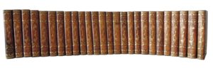 500. BUFFON (Comte de). Œuvres Complètes enrichies d’une vue générale des progrès de plusieurs branches des sciences naturelles, et mises en ordre par le compte de Lacépède… Nouvelle édition ornée d’un portrait de l’auteur, de 234 planches et d’un tableau gravé de tous les animaux nouvellement découverts. Paris, Eymery, 1825-1828. 26 volumes in-8, reliure demi-basane brune, dos lisse orné d’un décor romantique. Reliures très usagées, Portrait de Buffon d’après Devéria, 3 (sur 4 ?) cartes dépliantes et 243 (sur 245 annoncées) planches gravées en noir. Qq. traces de mouillure, qq. rousseurs selon les volumes. Exemplaire complet du volume de Supplément contenant un Précis des découvertes les plus importantes (t. 26) paru en 1828.