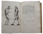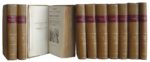 514. LAVATER (Johann Gaspard). L’Art de Connaitre les Hommes par la Physionomie. Nouvelle édition, corrigée et disposée dans un ordre plus méthodique; précédée d’une notice historique sur l’auteur; augmentée d’une exposition des recherches ou des opinions de La Chambre de Porta, de Camper, de Gall, sur la physionomie; d’une Histoire anatomique et physiologique de la face, avec des figures coloriées, et d’une très-grand nombre d’articles nouveaux sur les caractères des passions, des tempéramens et des maladies par M. Moreau. Ornée de 500 gravures sous l’inspection de M. Vincent, peintre. T. 9 : Ornée de plus de 600 gravures dont 82 coloriées … Paris, Prudhomme, Levrault, Schœll et Cnie, 1806-1807-1809. 10 volumes in-8, reliure à la Bradel, papier moutarde, dos lisse souligné de filets dorés, pièces de titre maroquin rouge. Accroc en marge du plat supérieur du t. 6. Ex-libris : Baron Reille (cachet sur le faux-titre). T. 1 : Frontispice (portrait), (8)-cxxviii-412 pp. et 11 planches hors texte dont 1 dépliante. Vignettes dans le texte. Rares rousseurs, non coupé. T. 2 : (4)-ii-271 pp. et 70 planches hors texte (numérotées 34 à 103). T. 3 : (4)-viii-340 pp. et pl. hors texte (numérotées 106 à 166). T. 4 : (4)-iv-395 pp. et pl. hors texte (numérotées 168 à 191). T. 5 : (4)-viii-388 pp. et pl. hors texte (numérotées 192 à 251). T. 6 : (4)-viii-296 pp. et pl. hors texte (numérotées 254 à 345). T. 7 : (4)-viii-312 pp. et pl. hors texte (numérotées 347 à 454). T. 8 : (4)-viii-304 pp. et pl. hors texte (numérotées 455 à 525). T. 9 : (4)-viii-340 pp. et pl. hors texte (numérotées 526 à 599). T. 10 : (4)-iv-271 pp.. Le tome 10 contient la Table raisonnée des Matières rédigée par M. Sue. Papier légèrement bruni. Certaines planches sont dépliantes, quelques-unes imprimées en bistre. Célèbre ouvrage du théologien et poète zurichois Johann Caspar Lavater (1740-1801) destiné à interpréter la personnalité et le caractère des hommes d’après les traits de leur visage et leurs expressions, attitudes, gestuelles, etc. Exemplaire en bel état, complet de ses gravures conformément à la numérotation, de cette nouvelle édition parue après l’édition originale française publiée de 1781 à 1803 à La Haye sous le titre Essai sur la physiognomie, destiné à faire connoître l’homme et à le faire aimer. L’édition originale allemande a été imprimée à Leipzig en 1775-1778. Brunet III, 887.