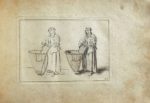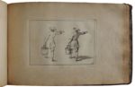 555. LECLERC (Sebastien). Divers Desseins de Figures dédiés à Monsieur Colbert d’Ormoy. Paris, N. Langlois, s. d. (1679). Suivi de : CALLOT (Jacques). Livre des Paysages de Callot Propre à la Noblesse et aux Ingénieurs, pour apprendre à dessiner à la plume avec liberté, et en peu de temps. Paris, N. Langlois, s. d. (v. 1692). In-8 oblong, reliure de l’époque veau brun, dos à 4 nerfs orné, plats encadrés d’un double filet dorés avec fleurons fleurdelysés aux angles. Qq. rayures et épidermures, mors fendus, manque dans les caissons de tête et pied, coins très usés. Recueil de deux suites incomplètes comprenant : Titre gravé et 25 (sur 29) planches gravées (6,70 x 9,07 cm env. à la cuvette); Titre, Avertissement ( 2 ff.) et 14 (sur 17) planches gravées (8,3 x 16 cm env. à la cuvette). Qq. rousseurs et taches d’encre, marges un peu brunies. Sébastien Leclerc (1637-1714), graveur majeur de plus de 3 000 eaux-fortes, grava une série de gravures pour enseigner le dessin à Jules-Armand Colbert, marquis de Blainville et d’Ormoy, futur surintendant des bâtiments et jardins de France. Le premier livre lui est dédié. Le Livre des Paysages de Callot est en retirage (second état) et paraît avoir été gravé par Mariette. Meaume 1099-1103, 1105-1106, 1109-1110, 1112-1118, 1120.