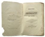 562. MONCKHOVEN (Désiré van). Méthodes Simplifiées de Photographie sur Papier. Paris, Marion, Gaudin, Londres, 1857. In-8, broché. Couverture défraîchie (mouillure et manque en marge), dos renforcé d’une bande de papier, marges rongées sur les premiers ff. 132 pp. et une planche hors texte. Édition originale enrichie d’une vingtaine de pages manuscrites (anonymes) donnant différentes méthodes de développement pour la photographie sur verre (de Milly), les épreuves trop faibles, les négatifs instantanés … et formules : iodures, liqueur sensiblisatrice, collodion neutre, collodion sensibilisé, bain d’argent pour négatifs et positifs…