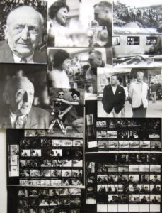 566. AGUIRAUD (Guy, 1933-2019). Réunion de photographies : • Marcel Allain (1885-1969, auteur de Fantômas). Deux portraits, 24 x 18,3 cm, l’un de face, l’autre de 3/4. Cachet Guy Aguiraud au verso. • Divers tirages non identifiés, dont l’un sur un tournage de film, auxquels on joint des planches contact et des négatifs.