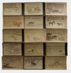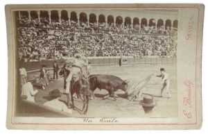 568. [Photographies]. BEAUCHY (Emilio.). Corridas à Séville. Vers 1893. Réunion de 15 tirages albuminés (env. 10 x 14 cm) légendés dans la plaque montés sur carton fort dont 9 avec cachet au verso et 6 sur carton imprimé à l’adresse Rioja 24 Seville. Tirages pâles, taches blanches. Emilio Beauchy (1847-1928), fils du photographe français Jules Beauchy, commença à travailler comme assistant dans le studio de son père. Considéré comme l’un des grands photographes des paysages et villes et fêtes d’Andalousie de la fin du siècle, il apparaît dans le guide des photographes de Séville dès 1881. Après avoir repris le studio de son père, puis ouvert la Casa Beauchy place de la Campana où il vendait du matériel et mettait un laboratoire à disposition des amateurs, c’est vers 1892 qu’il s’installa 24 rue Rioja.