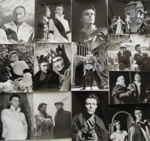 577. [Photographies]. VARDA (Agnès, 1928-2019). Jean Vilar & Gérard Philipe & alii. Réunion de 17 photographies originales, tirages argentiques avec tampon d’Agnès Varda au dos : Photo Agnes Varda 86 r. Daguerre Paris - 14e Ség. 57-17. (ou autre tampon sans adresse). Dimensions : environ 22 ou 23 x 17,5 ou 18 cm. Jean Vilar; Jean Vilar et Gérard Philipe dans Le Prince de Hombourg en 1951; Gérard Philipe dans Le Prince de Hombourg (2 clichés); Gérard Philipe dans Le Cid (2 clichés); Gérard Philipe dans Le Cid ; Jean Vilar et Maria Casares dans Macbeth en 1954 ; Gérard Philipe et Geneviève Page dans Les Caprices de Marianne en 1958; Jean Vilar et Gérard Philipe en 1958 ; les mêmes dans la cour du Palais des Papes en 1958 ; Gérard Philipe dans Ruy Blas … On joint : Gérard Philippe dans Le Figurant de la Gaité d’Alfred Savoir, joué au théâtre Montparnasse en 1949. Cachet au dos : Agence de Presse Bernand et cachet Librairie Le Coupe-Papier.