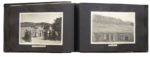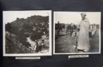 581. MAROC (Protectorat). 10 Ans de Protectorat 1912-1922. L’Œuvre de l’Armée au Maroc. Album personnel de photographies. Album in-8 oblong, cuir brun foncé, mors percés de deux œillets tenus pas un cordon tressé, contenant 159 photographies en noir et blanc contrecollées sur des feuillets noirs avec légendes tapuscrites, feuillets intercalaires imprimés. Tirages argentiques de différents formats : 76 photos env. 11,5 x 17,5 cm et 83 photos env. 10,5 x 11 cm. 7 photos abîmées par de la colle ou de une mouillure dont l’une avec un important manque superficiel. Album divisé en 5 parties : Les régions soumises (25 photos) : Photographies aériennes (Casablanca en 1907 et en 1922, Rabat, Azemmour, Fez, Sefrou, Marrakech …), vues de villes et paysages (Ouezzan, Bekrit, Les Koubbahs…) ; Les réduits de la dissidence (5 photos) : Paysages du Haut- et Moyen-Atlas ; En opérations (63 photos) : Débarquement et transport de matériel, Partisans, Revue des troupes, Convois, Camps, Goumiers, Corvées, Service géographique, distribution du courrier, Bivouacs, 75 en action, avion sanitaire, blessés, récompenses… ; Harka Glaouia au Todra 1919 (36 photos) : Vues générales, kasbah, piste, scènes diverses (Harkas, Chleuhs…) à Telouet, Tamdakht, Ouarzazat, Tikirt, Tinghir … ; Nos auxiliaires marocains (30 photos) : Tirailleurs, Spahis, partisans, goumiers, télégraphistes, École de Meknès, athlètes, infirmiers vétérinaires, construction de chemins de fer, intendance (cordonniers, boulangers, matelassiers, transport du vin, etc.) Très intéressant album, réalisé par un auteur non identifié, illustrant d’un point de vue géographique, historique, militaire et ethnographique les dix premières années du protectorat français au Maroc.
