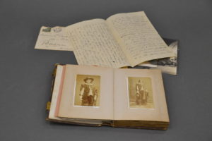 Mardi soir » (9mai 1905 ?). Longue lettre de 4 pages in-8, pleine de conseils et de tendresses à sa nièce « Paulou » qui lui a annoncé son prochain mariage. Enveloppe jointe. JOINT : Petit album de photos : Mounet-Sully et sa famille. 3 photos-cartes-postales et 20 photos. (Album en mauvais état).