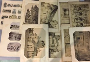 Vendome, Loir-et-Cher (1). JOINT : 15 photographies montées sur 2 feuillets comportant, pour l’un 3 photos (17 x 11,5 cm) : groupe de personnages (excursion archéologique ?) ; l’autre 12 photos dont 11 imprimées (échantillons pour cartes postales) et une (17 x 11,5 cm) : Gaillardo, vieilles maisons. L’ensemble :