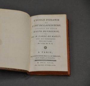 DUFRESNOY (A.) & Abbé De MARSY. L'Ecole d'Uranie ou l'Art de la peinture, traduit du latin, avec des remarques. Edition revûe & corrigée par le sieur M. D. Q. Paris, Imprimerie de P.G. Le Mercier, 1753. In-8 relié veau fauve de l’époque, dos...