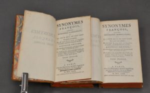 GIRARD. Synonymes françois, leurs diférentes significations et le choix qu’il faut en faire. Paris, Le Breton, 1769. 2 volumes in-12 relié veau fauve marbré, dos à nerfs ornés, tranches rouges.
