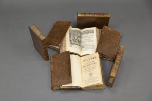 MOLIERE. Œuvres. Nouvelle édition. Paris, Hilaire Foucault, 1718. 8 volumes in-12 reliés veau brun, dos à nerfs ornés, tranches marbrées. (quelques coins et coiffes usés). Ornées d’un portrait et 30 gravures hors-texte.