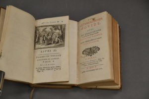 OVIDE. Les Métamorphoses. Avec des explications à la fin de chaque fable. Traduction nouvelle par l’abbé de Bellegarde. Paris, Pierre Emery, 1701. 2 volumes in-12 reliés veau brun époque, dos à nerfs orné. Ornées de 17 vignettes d’en-tête.