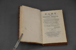 WATIN (M.). L'Art du peintre, doreur, vernisseur [...]. Paris, Grangé, Durand et l'Auteur, 1773. In-8 relié basane brune de l’époque, dos à nerfs orné, tranches rouges. (coins et coiffes usés). Seconde édition, revue, corrigée et augmentée.
