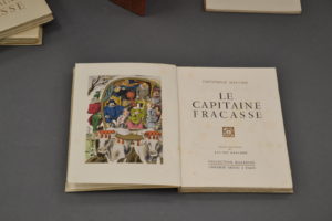 [BOUCHER]. GAUTIER (Théophile). Le Capitaine Fracasse. Illustrations de Lucien Boucher. Paris, Gründ, Mazarine, 1944. 3 volumes petit in-4 brochés sous une chemise et un étui de feutrine bordeaux. (étui fané) 3 frontispices et 29 planches...
