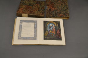 un des 100 nominatifs réservés aux membres de la Société. (n.21). Edition illustrée de 18 compositions gravée sur bois en couleurs, dont le frontispice et 8 hors-texte, avec le texte dans un large encadrement floral mis en couleurs.