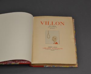 [DUBOUT]. VILLON (François). Oeuvres. Illustrations de Dubout. Paris, Gibert Jeune, 1934. In-4 relié demi-chagrin rouge, dos à nerfs, couvertures illustrées conservées. Illustrées de 67 compositions en couleurs de Dubout. Second tirage de cette...