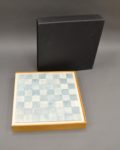 [DUCHAMP]. Catalogue d’exposition Marcel Duchamp. Anvers, Ronny Van de Velde, 1991. Boîte en bois 372 x 372 x 60 mm reproduisant l’échiquier de 1937 et renfermant: -Rrose Selavy/Marcel Duchamp, catalogue des oeuvres exposées (64 pp, 340 x 107...