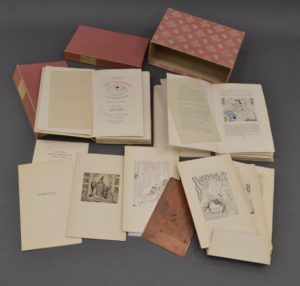 298 exemplaires et 10 h.c. sur papier vélin filigrané du Marais, un des 35 ex. avec un dessin original signé, en couleurs, un cuivre, une illustration sur calque avec les indications pour l’imprimeur (non mentionné dans la justif), la traduction avec les 2 planches refusées et l'état définitif des gravures en noir avec remarques (n° 29).