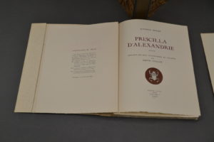[FOLLET]. MAGRE (Maurice). Priscilla d’Alexandrie. 78 illustrations en couleurs par Edith Follet. Paris, Martin-Dupuis, 1929. In-4 en feuilles, couverture rempliée, chemise, étui. (étui très abimé). Un des 789 exemplaires sur velin pur fil...