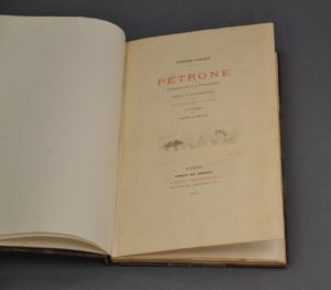 [FOURNIER]. DOUCET (Jérome). Pétrone. (Introduction & fragments). Illustré de huit compositions de Louis-Edouard Fournier. Paris, Ferroud, 1902. In-8, relié bradel demi-maroquin havane à coins, couverture illustrée et dos conservés. Tirage à...