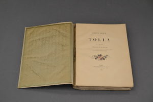 ABOUT (Edmond). Tolla. Paris, Hachette, 1889. In-4, broché, chemise rempliée, non rogné, chemise en velours et soie ivoire brodée. Édition de luxe illustrée d'un portrait de l'auteur d'après Paul Baudry et de onze compositions hors texte de...