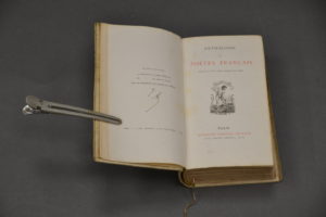 ANTHOLOGIE des Poètes français depuis le XVè siècle jusqu'à nos jours. Paris, Lemerre, s.d. (1875). In-16 relié vélin à petits rabats, titre manuscrit sur le dos. (Pouillet). Exemplaire enrichi des portraits gravés de 82 des poètes cités....