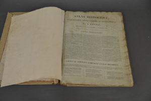 [ATLAS]. LESAGE (A.). Atlas historique, généalogique, chronologique et géographique. Paris, chez l’auteur, s.d. [circa 1820]. In-folio, demi-basane fauve. Reliure de l’époque, plats restaurés, plusieurs onglets restaurés).
