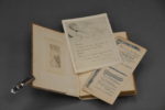 de Jean Cocteau que ce dernier publia à compte d’auteur à l’âge de 20 ans. C’est un recueil de poèmes inspirés des Mille et une nuits, qui valut à Cocteau le surnom de « Prince frivole ». Exemplaire dédicacé et signé par l’auteur sur la couverture de cet envoi : « Au petit « Baudu ». Leur bon copain. Jean Cocteau ». Ex-libris de René Baudu. Joint une carte illustrée d’une gravure de Chimot qui annonce la naissance de sa fille Josette le 23 avril 1913. Joint également une coupure de presse du 12 juin 1910 comportant un long poème de Cocteau : « Le Petit Prince assis à la terrasse du Fouquet’s bar ». Ouvrage imprimé sur un papier de mauvaise qualité, tout de même bien conservé malgré le papier jauni.