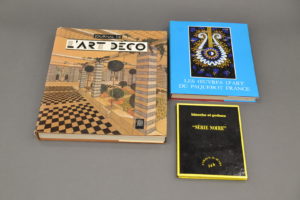 [Divers]. Lot de 3 ouvrages : BINOCHE & GODEAU. « Série Noire » Art colon et style tribal. Catalogue de la vente du 8 mars 1987. In-8, cartonnage et jaquette. – Les Œuvres d’art du paquebot France. Genève, Livror, 1969. In-4, rel. édit.,...