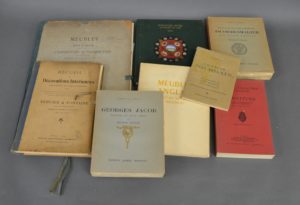 LEFUEL. Jacob-Desmalter ébéniste de Napoléon et de Louis XVIII. P., Morancé, s.d. In-8 carré broché. – LEFUEL. Georges Jacob ébéniste du XVIII° siècle. P., Morancé, s.d. In-8 carré broché. –MOUSSINAC. Francis Jourdain. Genève, Carlier, 1955. In-12 carré broché. Pl. h.t. – PERCIER & FONTAINE. Recueil de Décorations Intérieures. Paris, Guérinet, s.d. Format grand in-8, 81 planches (ntées 1 à 80), chemise cartonnée. – BRUNHAMMER. Meubles anglais. P., Massin, s.d. Grand in-8 cartonnage éditeur. – Wallace Collection Catalogue. Furniture. Text with historical notes and illustrations. London, 1956. In-8 broché. – PARTRIGE. Furniture, silver & works of art. 2004. Petit in-4, reliure éditeur.