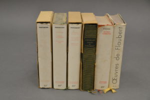 PLEIADE. (volumes de la). DOSTOIEVSKI. L’idiot (…) – Les démons (…) – Les frère Karamazov (…) – Crime et chatiment. 1952-1955. 3 jaquettes/4, sans rhodoïd, 3 étuis/4. – FLAUBERT. Œuvres T. 2, 1952. Jaquette, sans rhodoïd ni...